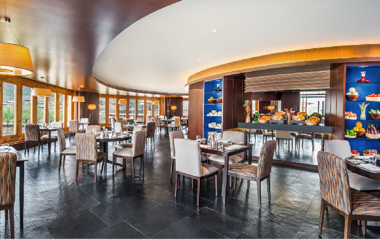 佛教是不丹的國教,當地人多以簡單的素菜料理為主,雖不殺生但沒有禁止吃肉,還是能透過進口取得葷食,烹調簡單料理供客人享用。雖然會有些不習慣,但偶爾吃吃食物的原型,也不失為一個健康的選擇。