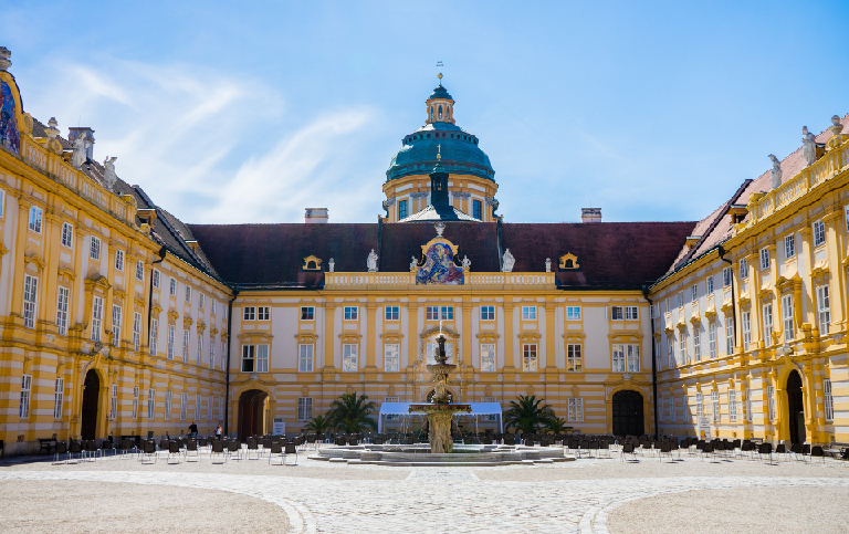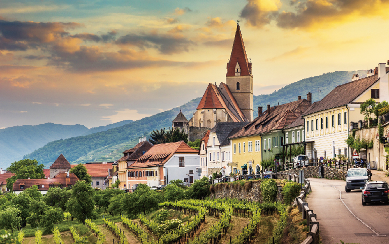 穿過多瑙河最迷人美麗的河段 一 瓦豪河谷【UNESCO 2000】位於奥地利梅爾克與克雷姆斯之間,全長約30公里。沿途教堂和民居等建物散落岸邊,城堡從蓊鬱茂盛的樹林中探出頭來,斜坡上的葡萄園綿互不絕,此等美景令人人傾心嚮往,被譽為多瑙河最美的河段,搭乘河輪享受這悠閒寕靜的鄉間風光,抵達位於梅克爾的大梅爾克修道院【UNESCO 2000 】,參觀院內收藏許多珍貴的中世紀手稿。