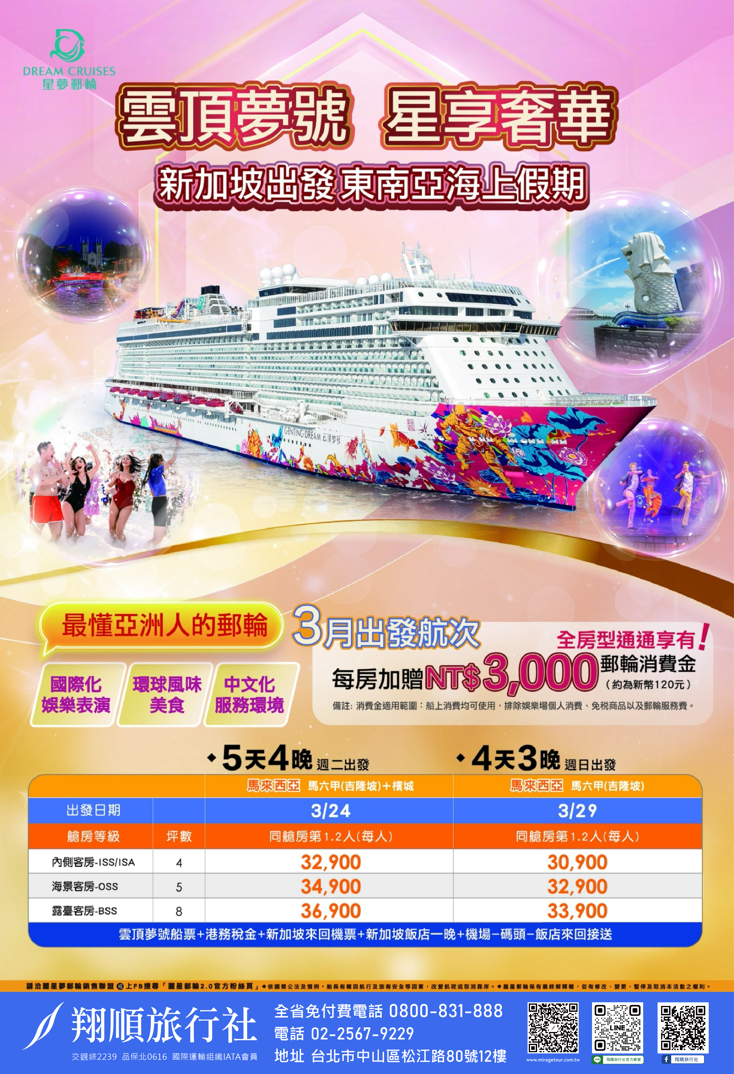 ■ 名勝世界郵輪在不可抗力及惡劣天候因素下保有取消或更改既定航程、時間、船隻及更改價格之權利,恕不作預先通知。