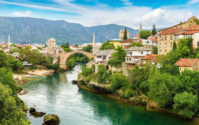 波斯尼亞和黑塞哥維那共和國(波黑共和國)是今天行程的重點,這裡原是前南斯拉夫的 6 個社會主義共和國之一。建于中世紀的石頭城,現已收入世界文化遺產名錄。之後到有「隱世秘境」之名的布拉加伊,建於山崖中的特基雅修道院配上清澈見底的溪流,美得令人驚訝。接著前往充滿歷史痕跡的古城莫斯塔爾,登上世界文化遺產、造型優美宏偉壯觀的古老高拱橋,捕捉兩岸如油畫般美景。遊罷詩情畫意的古城後,驅車前往酒店。