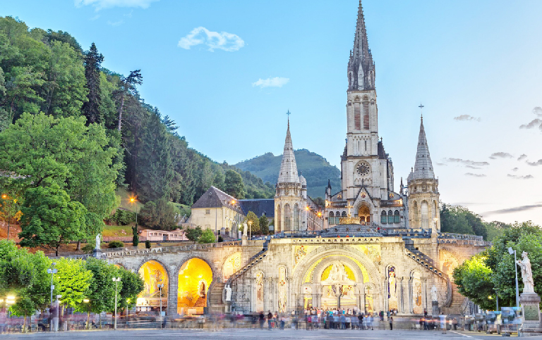 購物者聖地與朝聖之地!前往“安道爾大公國”此袖珍小國位於法國和西班牙交界處,坐落庇利牛斯山脈之間,境內高山環繞,地形崎嶇,首都安道爾城有歐洲海拔最高首都的稱號。這個一般亞洲旅客不太關注的小國,卻是風景秀麗,更是歐洲人的滑雪渡假勝地。也因為免稅的關係,是遊客最愛血拼的天堂。午後沿著庇里牛斯山脈進入法國,朝著名的聖母朝聖地露德小鎮方向進發。據說 150 年前聖母瑪利亞在此顯現,此後發生的醫療神蹟不可勝數,每年都有超過 500 萬人次的朝聖者造訪露德。