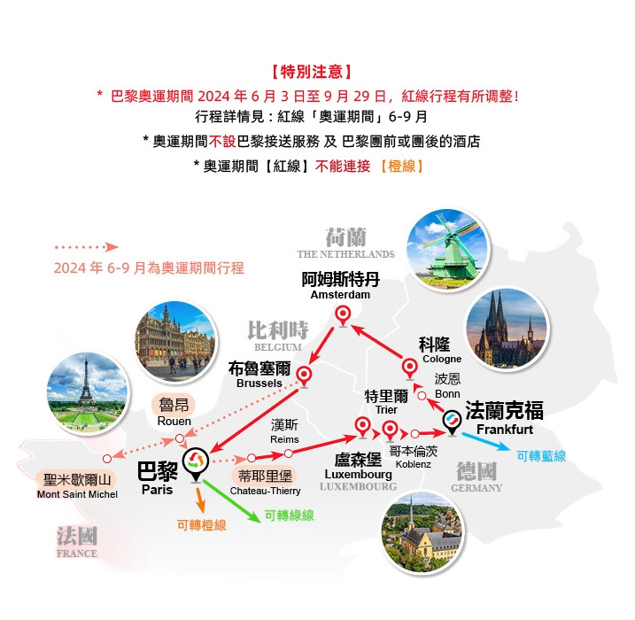 注意:集合後,不遊覽盧森堡,直接啟程前往當晚住宿酒店