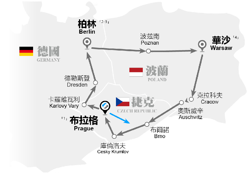 注意:集合後,不遊覽布拉格,直接前往卡羅維瓦利