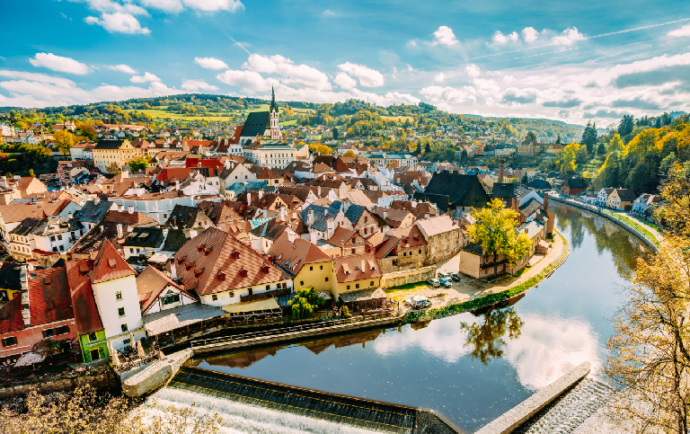 世界文化遺產的CK小鎮庫倫洛夫,其如童話的小鎮風情令人著迷。庫倫洛夫自13世紀就已存在,古城內青石街道與城塔是最耀眼的地標。這裡是個很適合悠閒散步,體驗中世紀風情的地方。它擁有捷克第二大城堡群,城內有40幢宮殿和塔樓,從城堡橋廊鳥瞰古城,明信片上的紅屋頂海現於您眼前。遊覽後,驅車前往布拉格。若時間許可,可額外安排前往童話般的赫盧博卡城堡 (要按當時道路情況),它是捷克最美麗的三大城堡之一。前身為皇家城堡,環繞著美麗的公園和湖泊, 設有高雅的庭院和精緻宮殿。預料黃昏時份抵達布拉格。