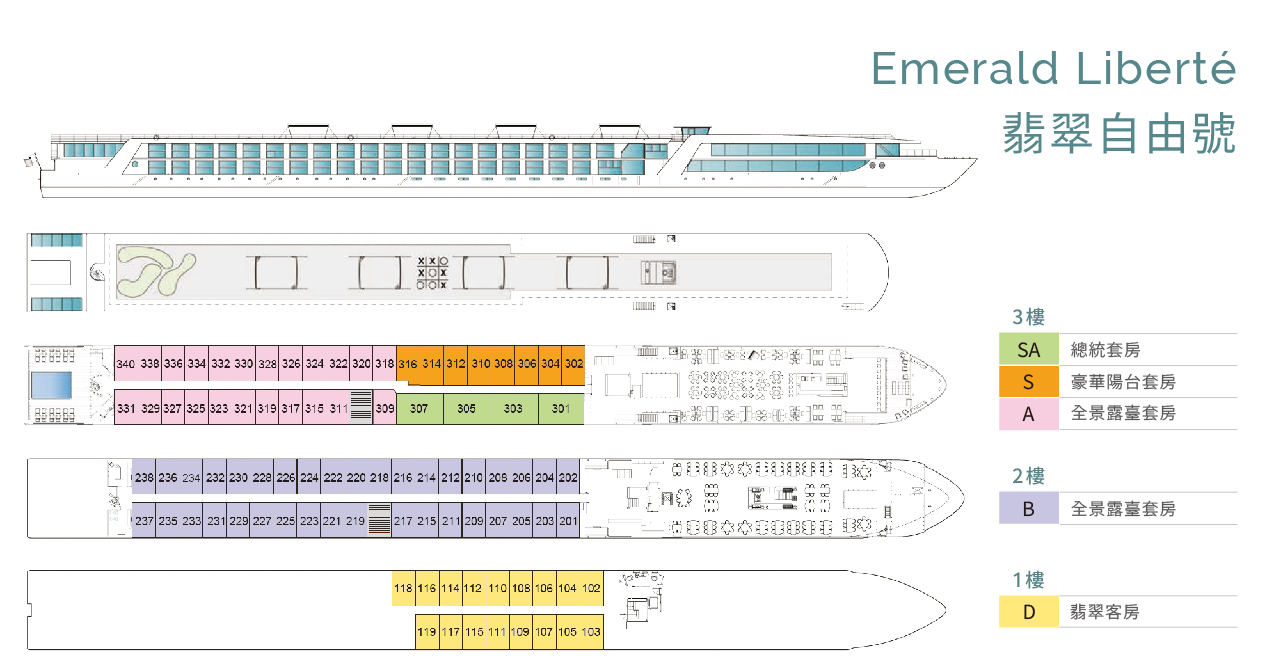 | 出發日期 | 3樓總統套房 | 3樓豪華陽台套房 | 3樓全景露台套房 | 2樓全景露台套房 | 1樓翡翠客房 |