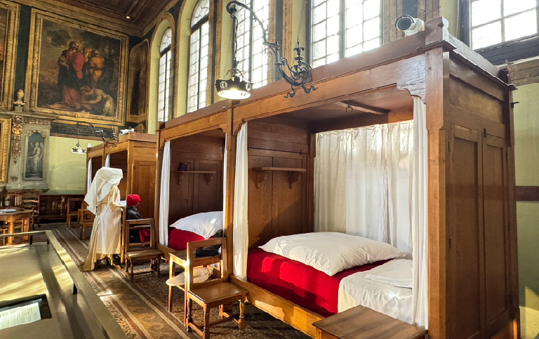 今天上午我們將前往博訥並參觀當地最著名臨終關懷醫院,也被稱為「主宮醫院」。成立於1443年,作為弱勢群體的醫院,是哥德式建築的一顆明珠,因其彩色琉璃瓦鋪成令人眼花繚亂的幾何圖案而一眼就能認出來。現今博物館藏品非常豐富,據記載有2500件家具和2500件包括掛毯、繪畫、雕塑在內的藝術品。