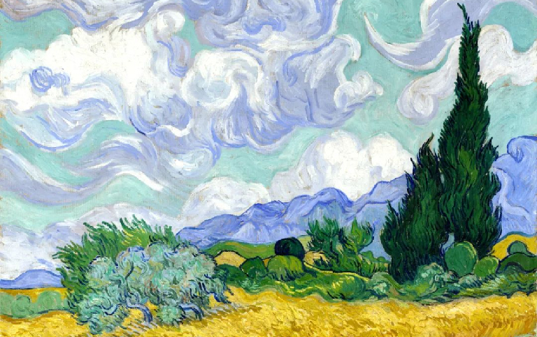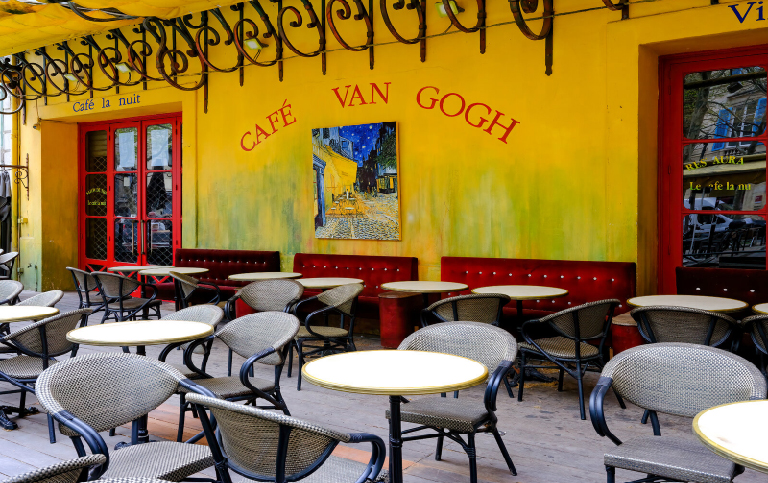 1888年梵谷定居法國南部亞爾,完成後來聞名於世的「向日葵」系列;同年高更短暫來訪 ,兩人曾發生衝突。隔年梵谷精神崩潰,住進聖雷米附近的精神病院,留下〈星夜〉、〈麥田與柏樹 〉等作品。
