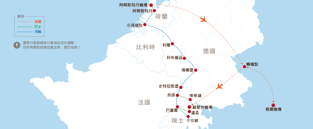 今天為離船日 → 早餐後,專車前往阿姆斯特丹機場/轉機點