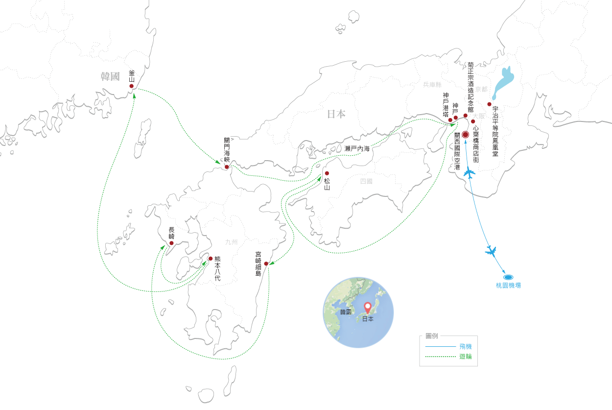 此行程為【聯營旅遊商品】與同質旅行社共同聯營方式出團。感謝您參加本公司日本、韓國地區遊輪團體行程,為了使您此行收穫更加豐碩,特將遊輪團體旅遊相關的訊息向您報告及說明,盼能增加您對這些的認識,並做好行前萬全的準備。同時請您遵守下列事項,這是我們應盡告知的責任,也保障您的權益。